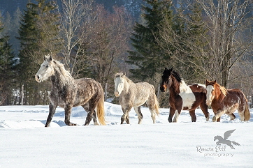 Im Winter 2018/2019 kam die Pferdebuchautorin und -trainierin Renate Ettl uns besuchen, um für ihr aktuelles Buchprojekt “Kreative Pferdefotografie” ein Fotoshooting mit unseren gelockten Curlies zu machen.