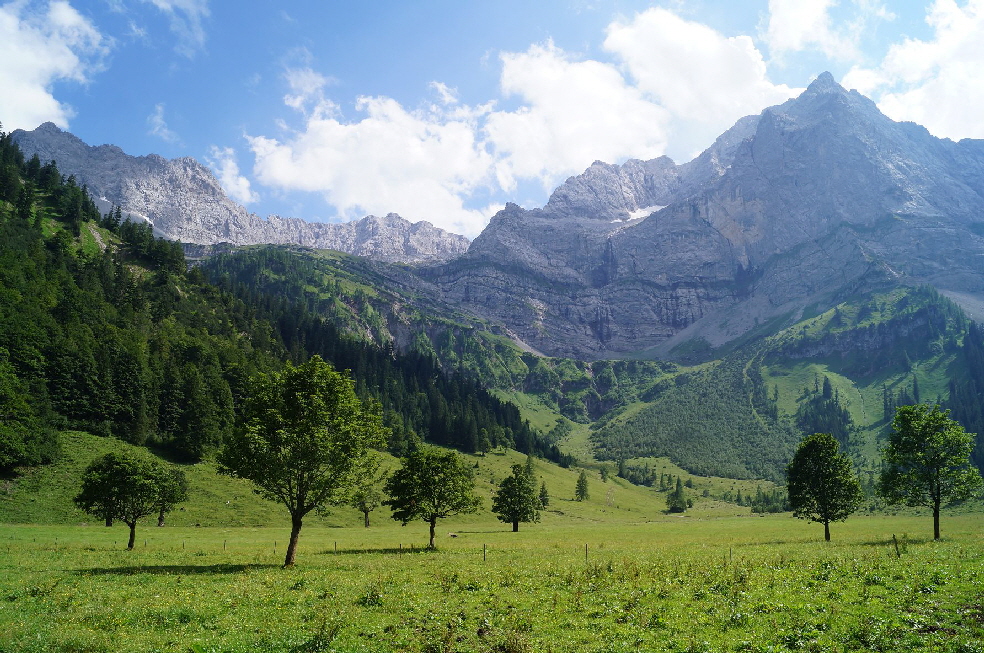 Ein Highlight der ganz besonderen Art ist das Almdorf Eng im Ahornboden. Die Alm liegt eingebettet inmitten des wunderschönen Karwendelgebirges in der sogenannten Eng. Mit dem Auto kann man von Wallgau aus bis zum Alpengasthof Eng fahren und von dort aus geht ein 700 Meter langer, geteerter und sehr interessanter Themenweg zur Eng-Alm. Der Weg ist auch hervorragend für Kinder und ältere Menschen geeignet, da es jede Menge Bänke zum Rasten und Verweilen gibt.