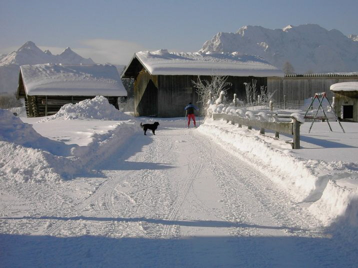 Wenn genügend Schnee gefallen ist hat man sogar die Chance direkt vom Isarhof aus loszulaufen. Ansonsten kann man in 250 m in die Loipen einsteigen.